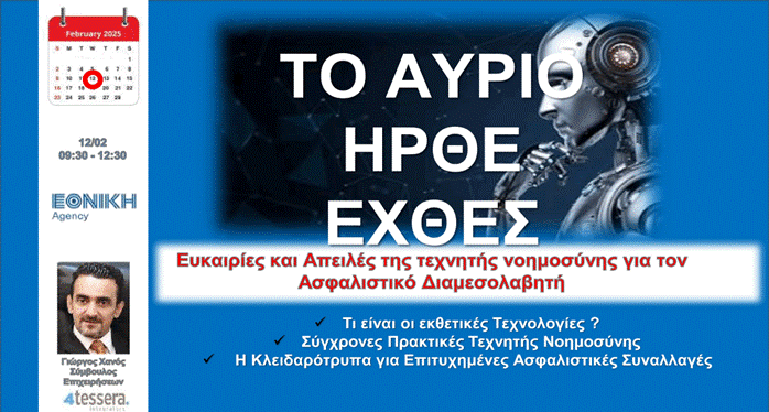 Με ιδιαίτερη χαρά, η «A Team – Σύμβουλοι Ασφαλιστικών Υπηρεσιών», μία από τις κορυφαίες Συντονιστικές Διευθύνσεις Δικτύου της Εθνικής Ασφαλιστικής, υπό την ηγεσία του κ. Χρήστου Νικολάου, ολοκλήρωσε με επιτυχία το σεμινάριο «Εφαρμογές Τεχνητής Νοημοσύνης για Ασφαλιστικούς Πράκτορες». Οι εισηγητές, κ. Γεώργιος Χανός, Σύμβουλος Επιχειρήσεων, και κ. Σάκης Κουκουβής, Σύμβουλος Cloud, παρουσίασαν τις νέες τεχνολογίες που μπορούν να ενισχύσουν το έργο των επαγγελματιών του κλάδου.